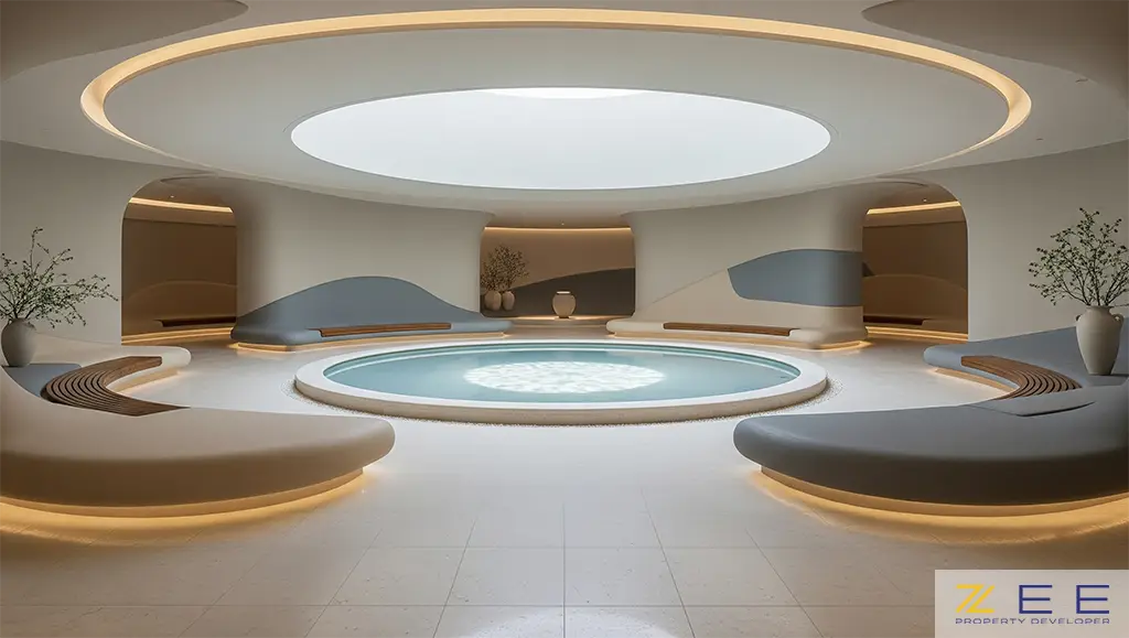 | فرم و شکل | استفاده از فرمهای منحنی در طراحی مبل، آینه، و طرح روی فرش |